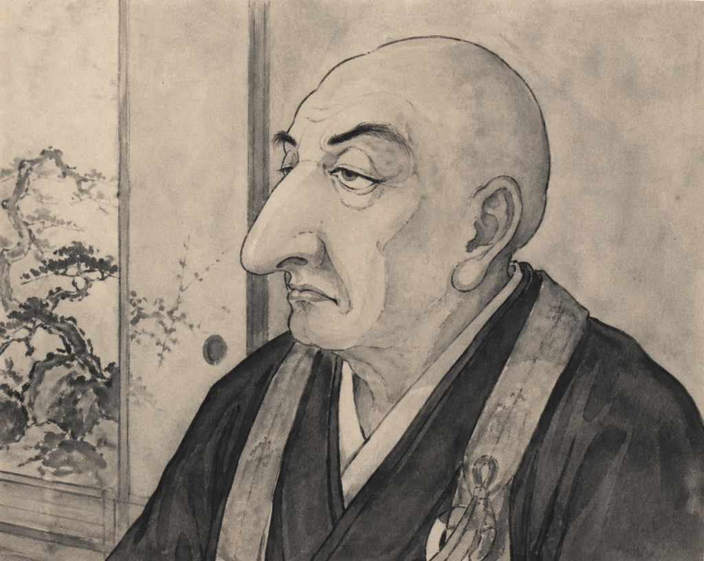 おおきな鼻を気にしていた僧侶が,ある日,小さくなった自分の鼻に最初はまんざらでもなかったのだが,次第に落ち着かなくなり,終いにはとうとう元に戻したいと思う.