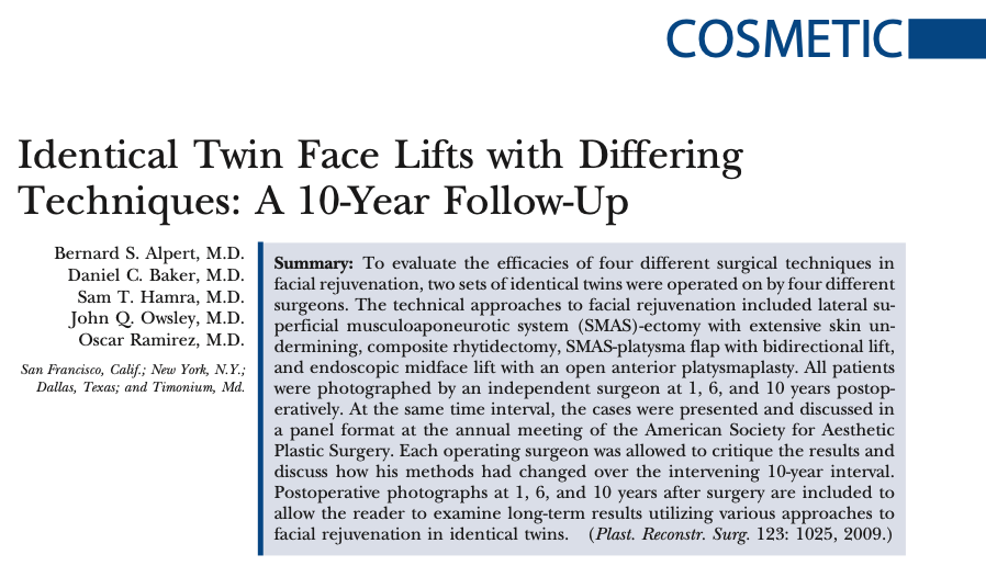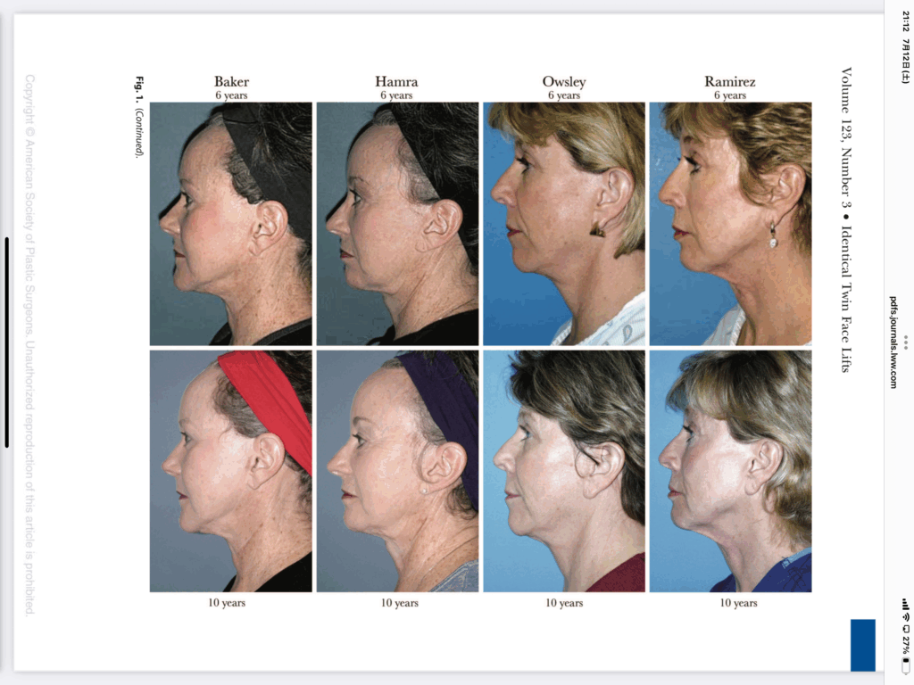 ちょこっと絵をあげとくけど,ガチで10年効いてるのは BakerのSMAS plication. Deep plane は2~6年あたりから下がってる.まあ,それとは別に,natural aging という視点でみると・・・ だよねぇ〜〜